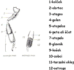 Sprednja noga ima zarezo za čiščenje tipalnic.