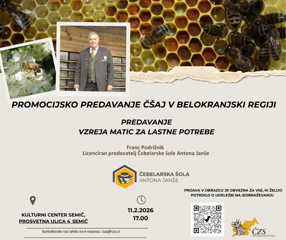 Vabljeni na predavanje Čebelarske šole Antona Janše v Kulturnem domu Semič.