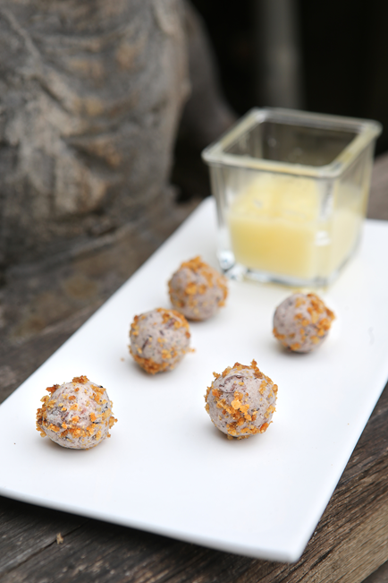 Kroglice: 20 dag kuhanega fižola, 2 gomolja zelene, 1 koleraba, 5 dag ješprenja, sol, pest mletih suhih ocvirkov.