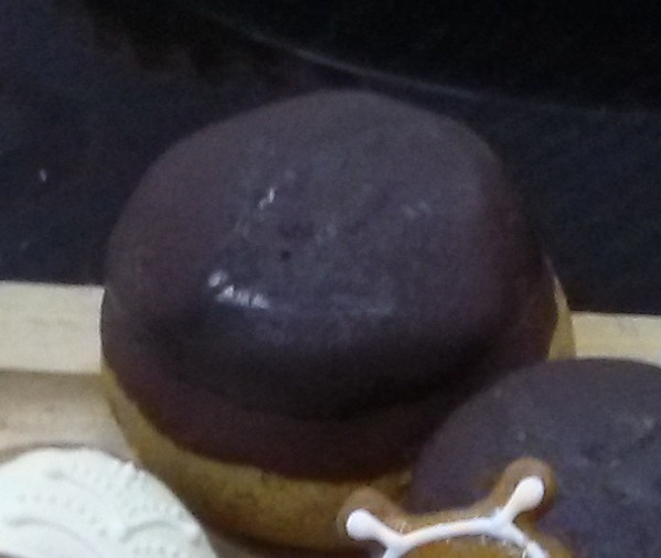 Glazura: domača marmelada, črna čokoladna glazura: 200 g črne čokolade, 100 g masla.